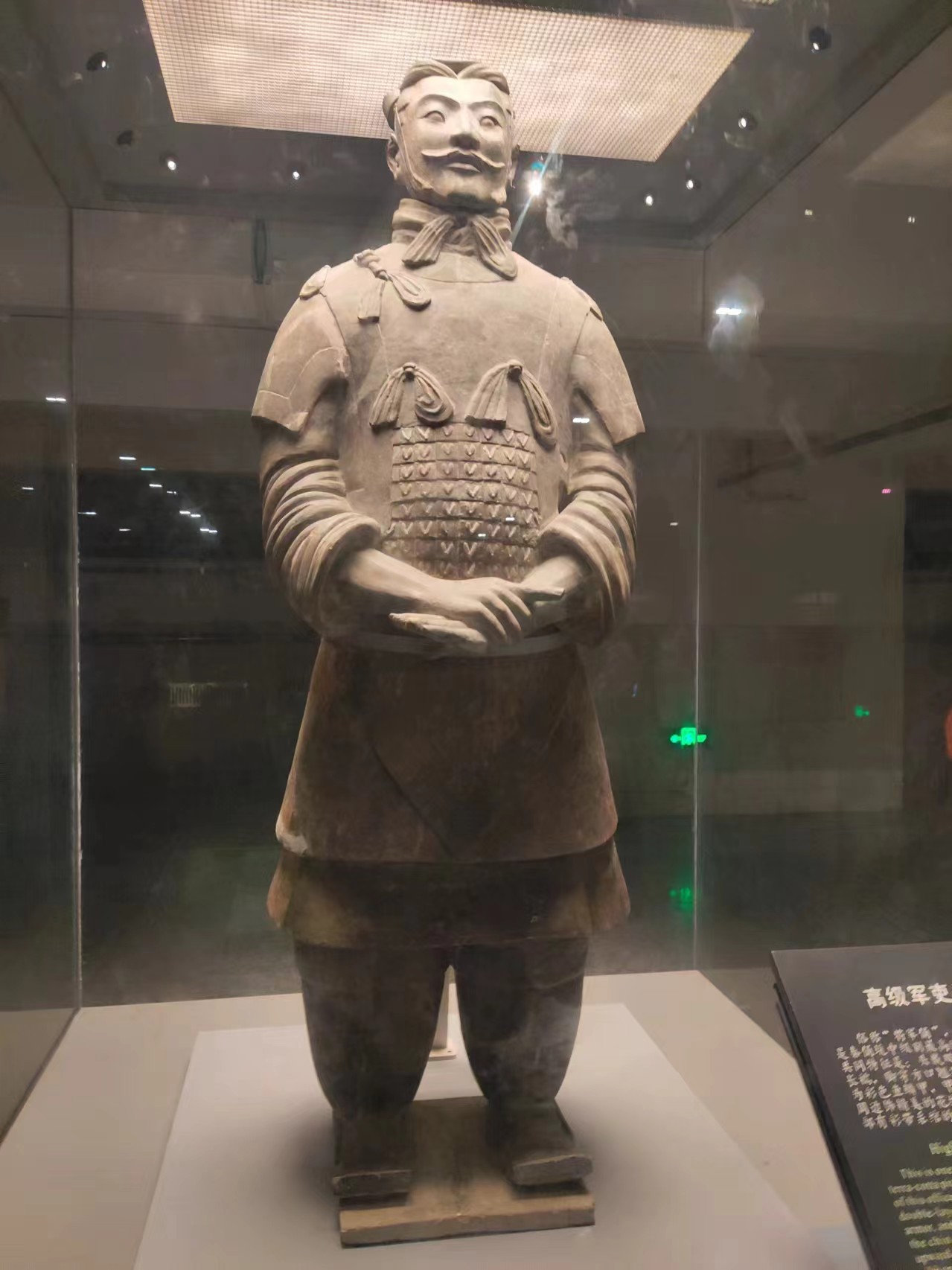 接下来,我们来到了二号坑。最著名的高级军吏俑,跪射俑,立射俑等都在这里。只见跪射俑身姿沉稳,似在蓄势待发;高级军吏俑威风凛凛,尽显将领风范;立射俑张弓搭箭,仿佛下一秒就要射出凌厉一箭。他们从尘封的历史中走来,带着大秦帝国的豪迈与威严,每一尊都是岁月的传奇,每一道纹理都诉说着往昔的风云激荡。在茫茫历史的长河中,他们如一颗璀璨的流星划过天际,闪耀了整个天空。他们静静伫立,却让历史的余音在观者心中久久回荡。
